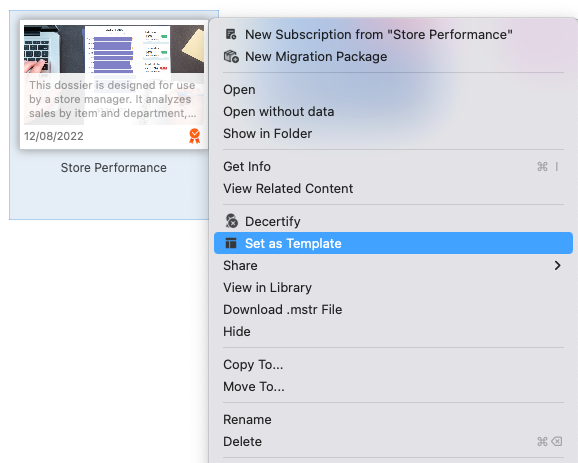 Sélectionner Définir comme modèle.