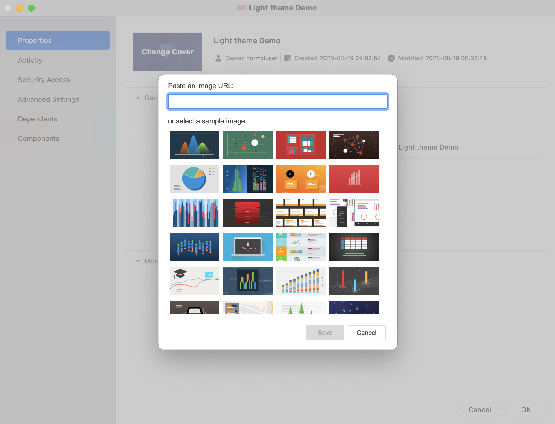 Cliquez sur Modifier la couverture et collez une URL d'image ou sélectionnez un exemple d'image.