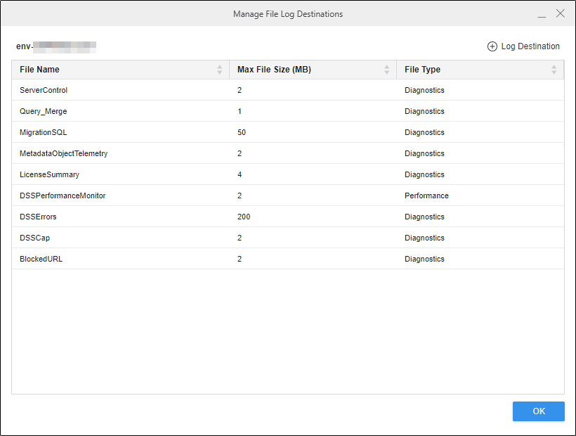 . et choisissez Gérer les destinations de journaux de fichiers.