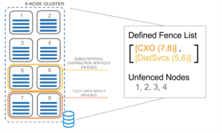 Examinez l'exemple suivant qui montre une implémentation en cluster avec huit nœuds :