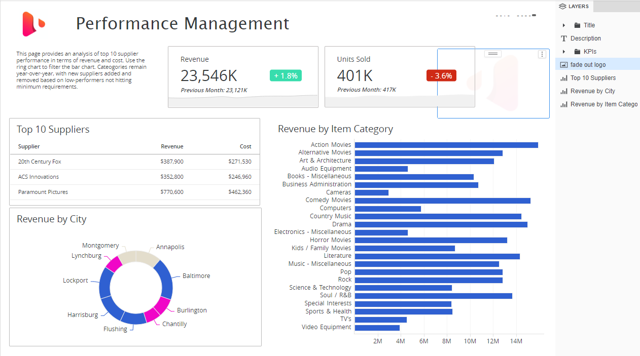 - Ouvrir un tableau de bord dans mise en page libre.