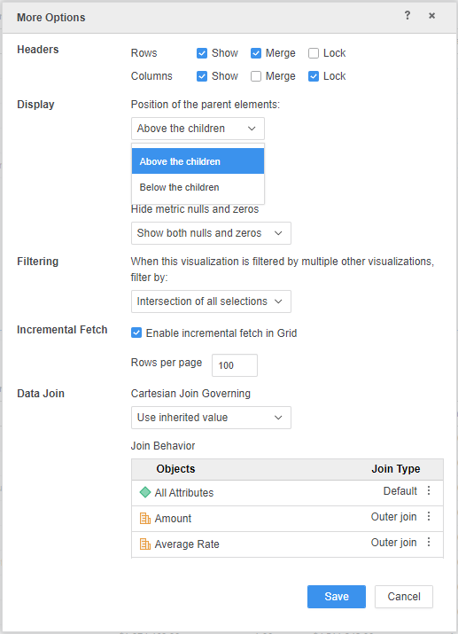 Vous pouvez personnaliser la position des éléments parents d’attributs hiérarchiques afin qu’ils apparaissent au-dessus ou en dessous des éléments enfants.
