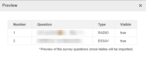 - Cliquez sur Aperçu de données pour avoir un aperçu des questions contenues dans l'enquête.
