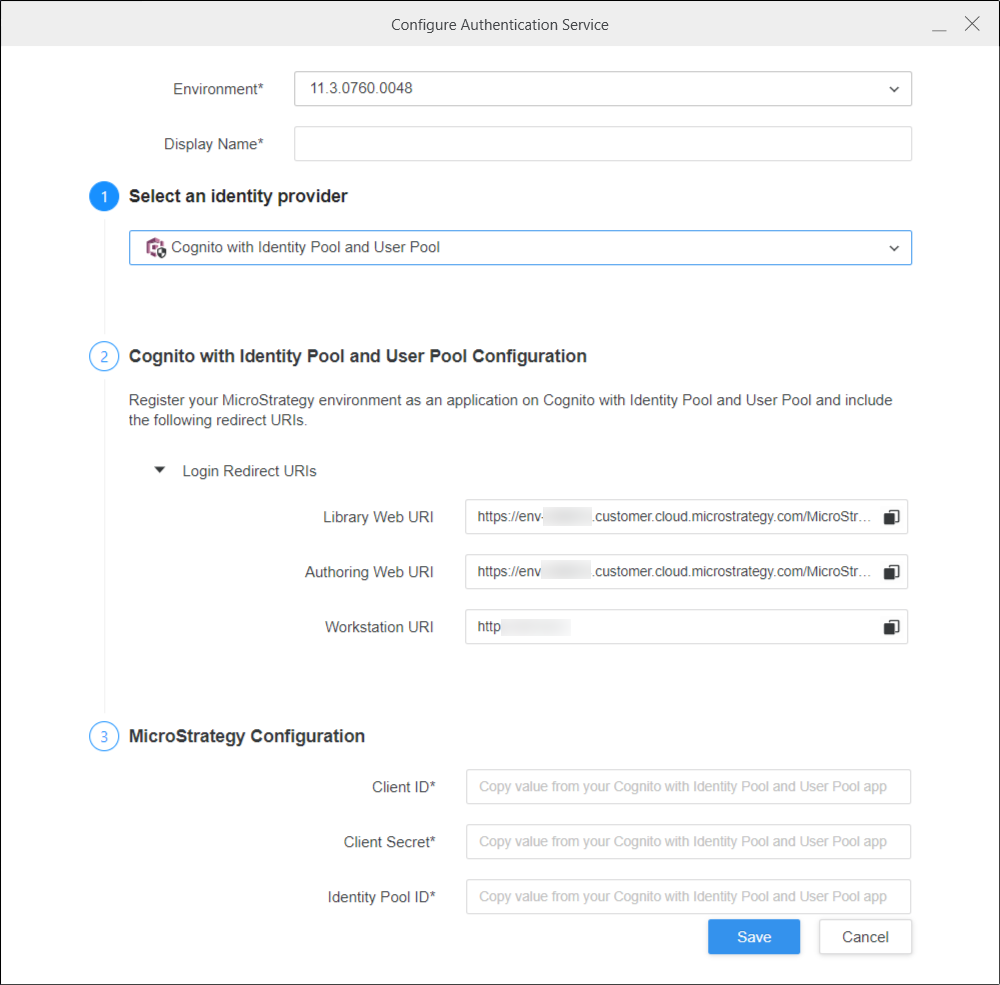 Sélectionnez un fournisseur d'identités de Cognito avec pool d'identités et pool d'utilisateurs.