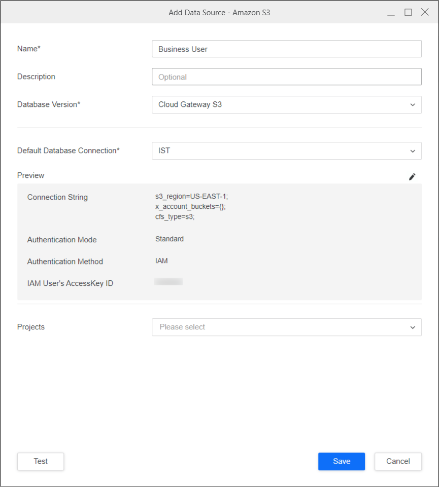 Sélectionnez le rôle de base de données Amazon S3. Les rôles de bases de données créés à l'aide des sources de données et des workflows de sécurité d'entreprise sont visibles ici.