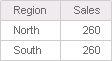 Les données pour les Ventes affichent 260 $ pour les deux Régions, ce qui correspond aux ventes totales de toutes les régions. Dans la plupart des scénarios, ces données de ventes doivent plutôt refléter les données de chaque région. Pour ce faire, vous pouvez autoriser la jointure des données pour les attributs non liés Catégorie et Région.