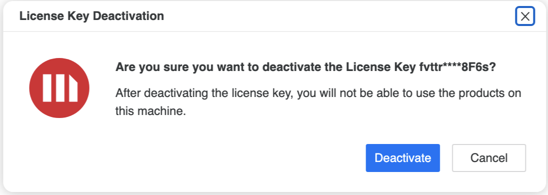 - Le message suivant s'affichera, confirmant que la clé de licence a été désactivée.