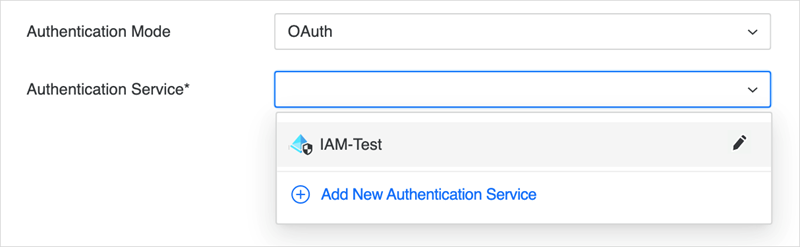Dans Service d'authentification, choisissez des objets IAM existants ou cliquez sur Ajouter un nouveau service d'authentification pour créer un objet IAM directement dans cette boîte de dialogue. IAM nouvellement créé s'affiche dans la section Enterprise Security du volet de navigation.