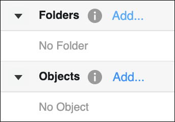 Vous pouvez attribuer différentes actions aux dossiers et objets. À côté de Dossiers ou en Objets, cliquez sur Ajouter.