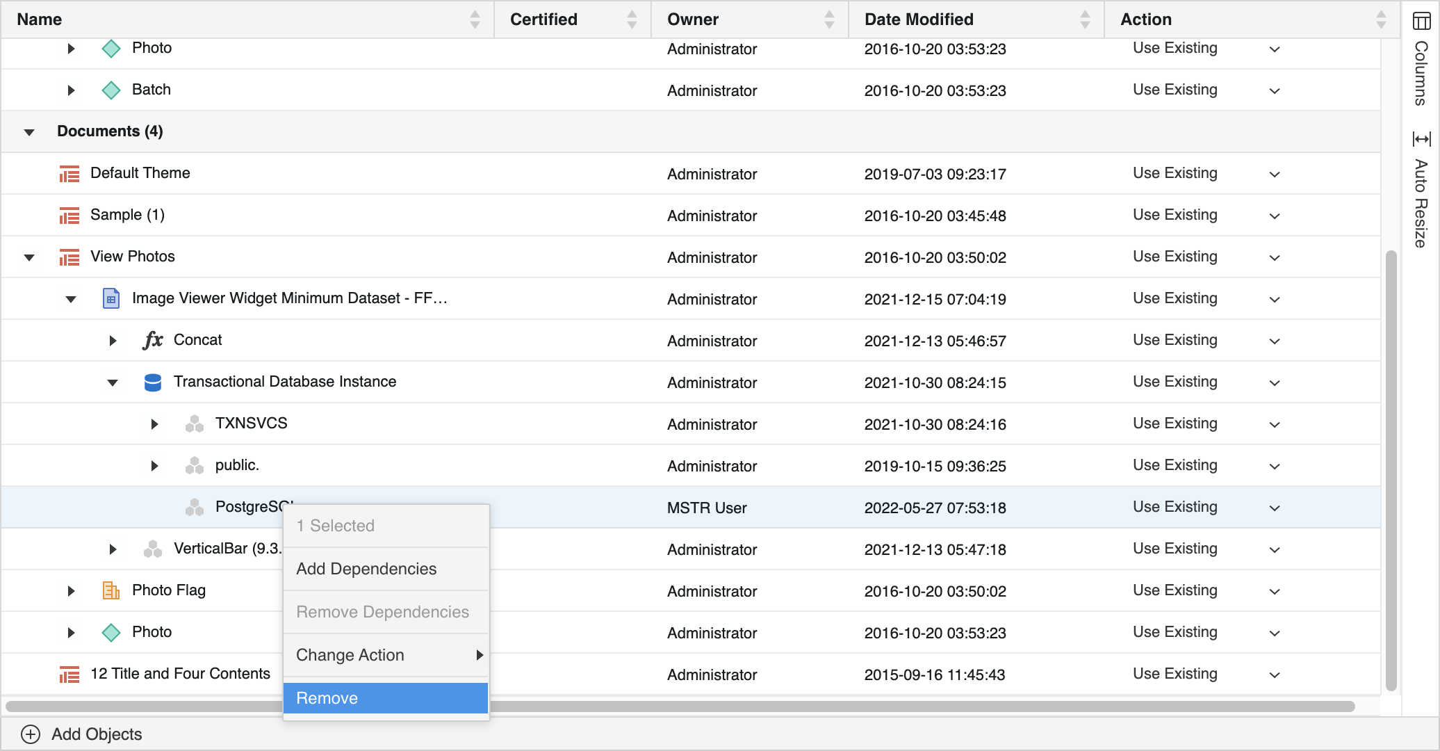 Une fois que vous avez ajouté des objets, vous pouvez ajouter leurs dépendances. Cliquez avec le bouton droit sur un objet et choisissez Ajouter des dépendances.