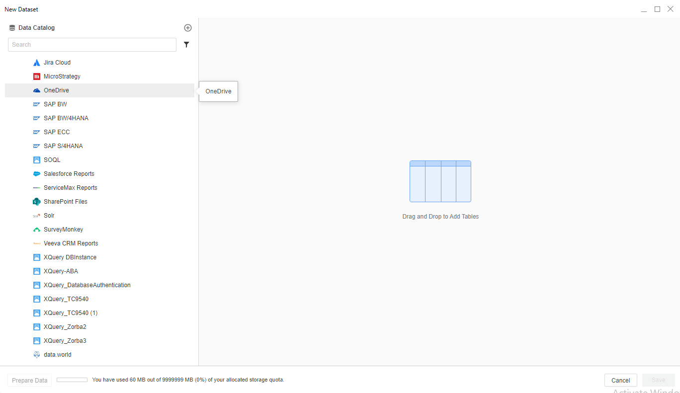 À partir de la MicroStrategy 2021 Update 8, vous pouvez utiliser le connecteur OneDrive dans le cadre du nouveau expérience d'importation de données.