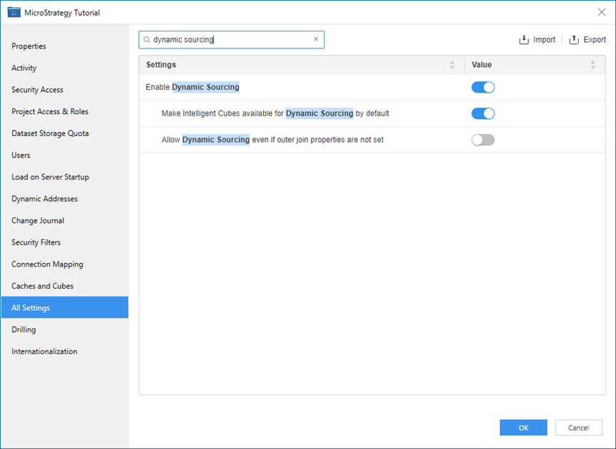 Cette amélioration des performances profite aux cas d'utilisation où l'approvisionnement dynamique est activé pour au moins un des projets et où des caches de Cube actifs sont disponibles pour les projets. Pour vérifier si l'approvisionnement dynamique est activé pour un projet, suivez les étapes ci-dessous.