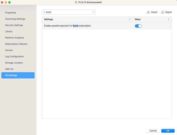 - Rechercher Activer l'exécution parallèle pour les souscriptions au mode rafale et cliquez sur la bascule pour l'activer.