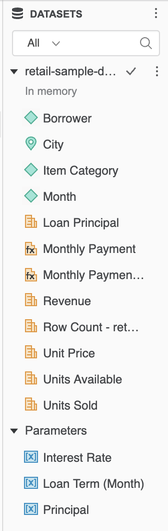 2. Cliquez sur Plus en haut du panneau Jeux de données et choisissez Créer un paramètre. Consultez les sections ci-dessous pour plus d'informations sur les différents types de paramètres et sur la façon de les utiliser.