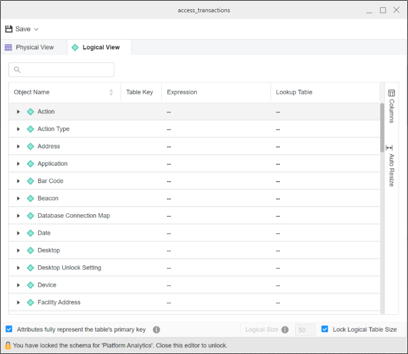 Pour empêcher les utilisateurs de modifier Taille logique, sélectionnez Verrouiller la taille de la table logique case à cocher.