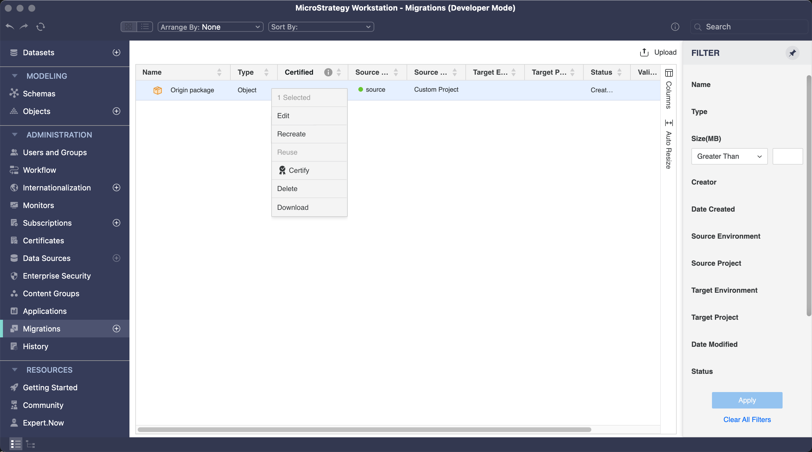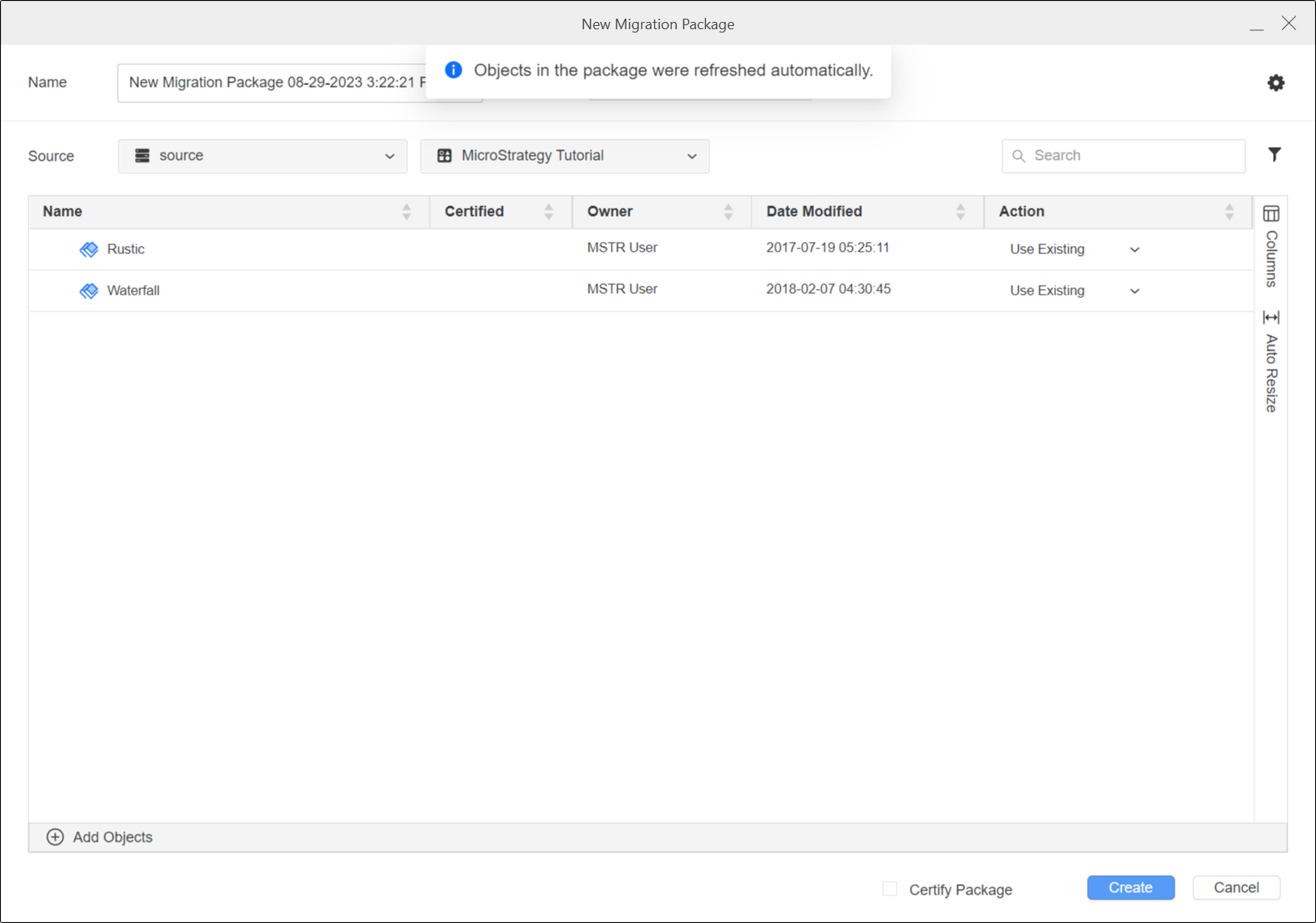 Démarrage dans MicroStrategy ONE Update 11, vous pouvez utiliser un package existant pour le recréer en un nouveau package avec des modifications.
