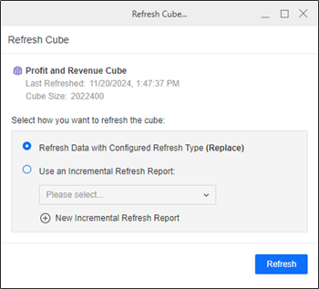 Démarrage dans MicroStrategy ONE (Septembre 2024), vous pouvez effectuer une seule actualisation du Cube pour OLAP et MTDI Cubes.