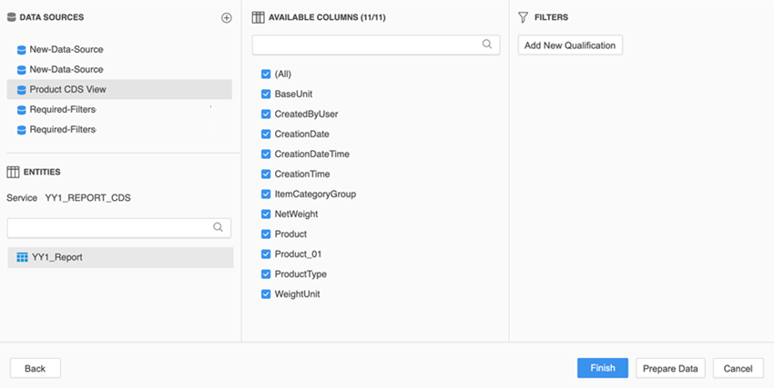 Une fois que vous vous êtes authentifié et connecté vers SAP S/4HANA, vous pouvez importer des données à partir d'un SAP S/4HANA CDS Afficher dans Strategy.