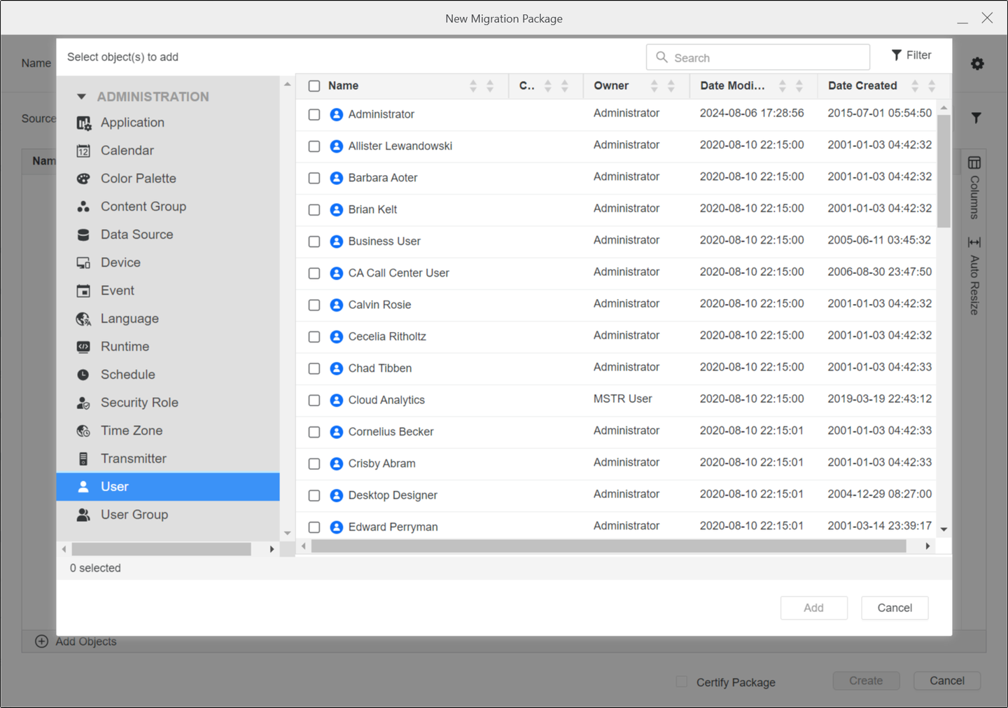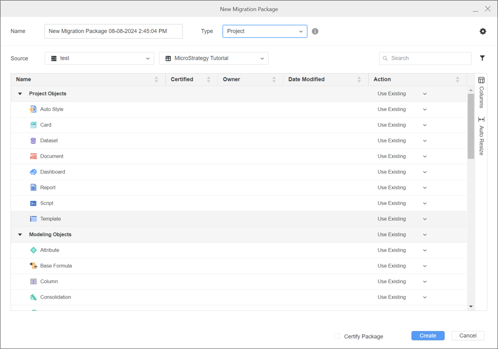 Démarrage de MicroStrategy ONE (septembre 2024), présentation de deux nouveaux types d'objets (scripts et runtime) pour les trois types de packages de migration (Objet, Projet, et Administration packages) déjà disponibles dans Workstation.