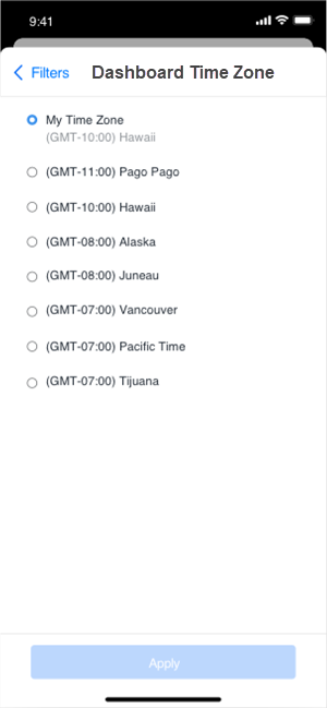 Dans Library Mobile, ouvrez un tableau de bord avec un attribut sensible au fuseau horaire.