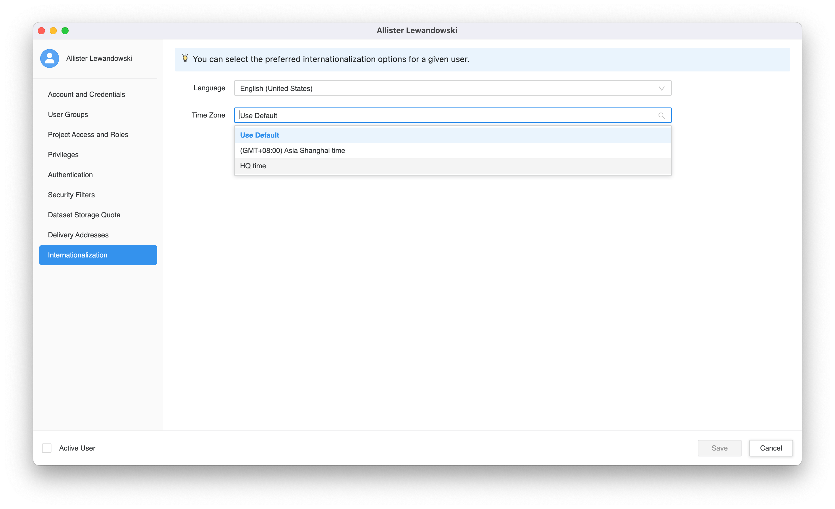 Affecter des objets d'internationalisation par défaut aux utilisateurs