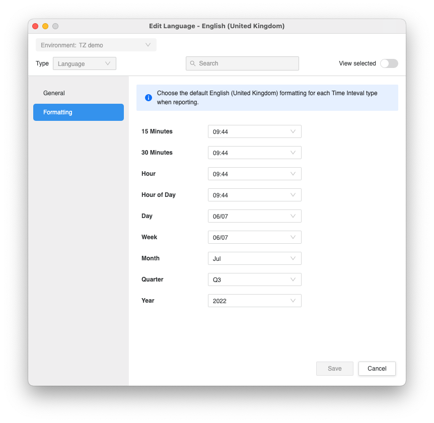 La fonctionnalité Langues vous permet d'internationaliser facilement votre environnement. Vous pouvez définir la mise en forme pour les attributs intelligents dans Library. Cela permet un formatage cohérent sur une région donnée. Les objets de langue permettent également le contrôle de la langue de l'interface dans Library si la langue est prise en charge d'origine.