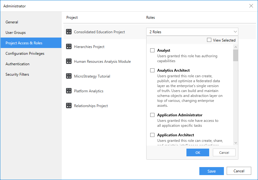 - Dans le volet gauche, cliquez sur Accès aux projets et rôles.
