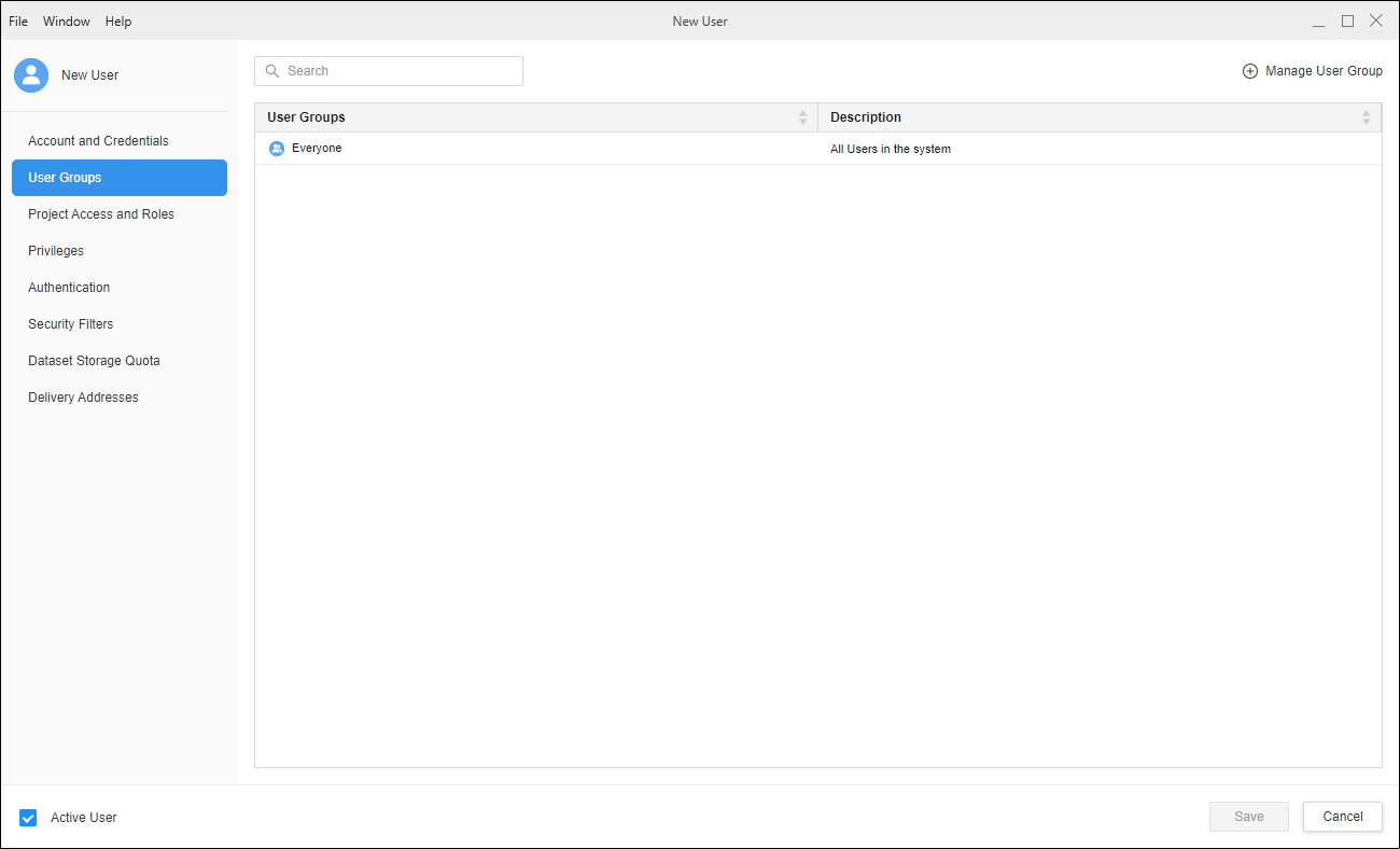 Cliquez sur Gérer le groupe d'utilisateurs pour ajouter un nouveau groupe d'utilisateurs. Sélectionnez ou recherchez le groupe auquel vous souhaitez ajouter l'utilisateur.