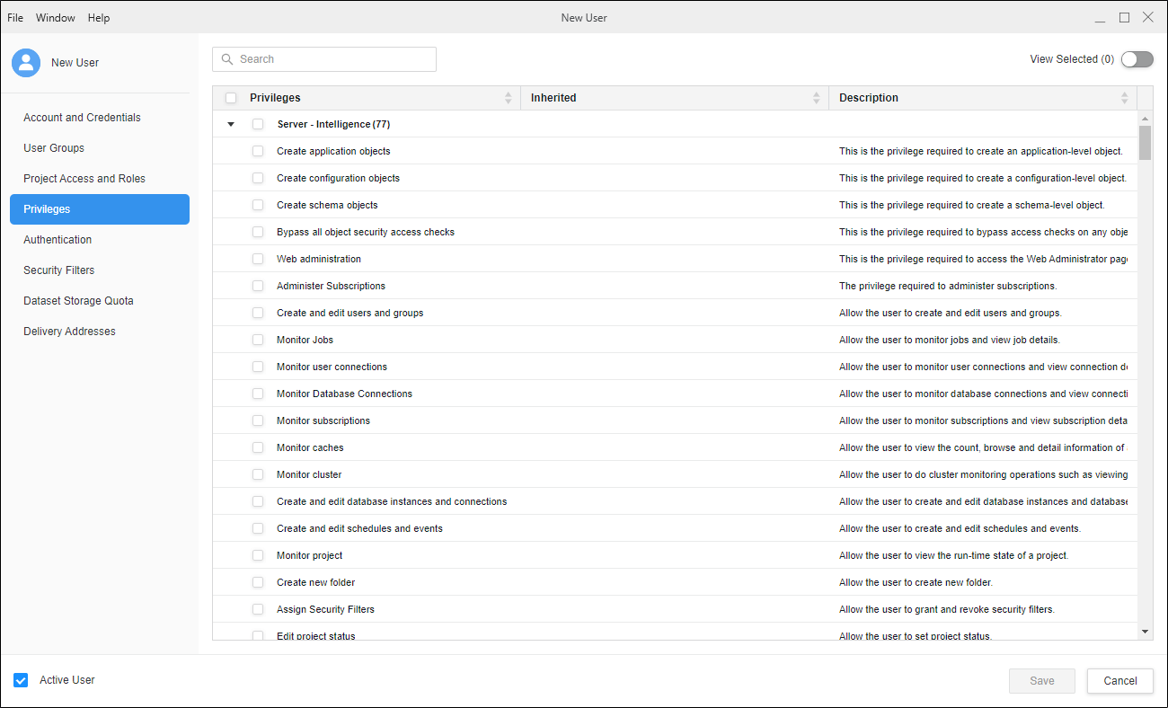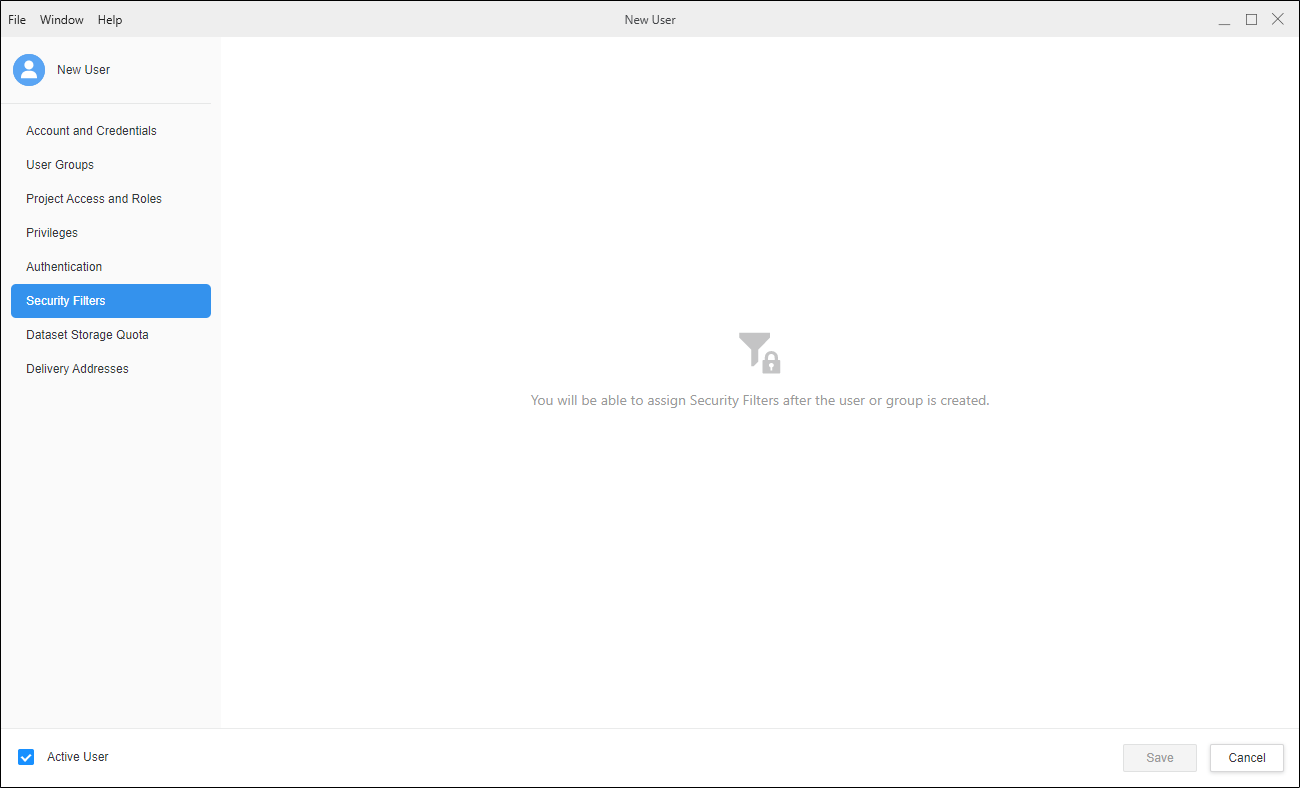Filtres de sécuritéVous devez terminer la création de l'utilisateur avant de pouvoir attribuer des filtres de sécurité.
