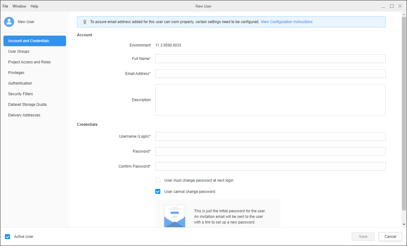 - Connexion, Nom complet et Afficher l'adresse e-mail du nouvel utilisateur, et un Description.