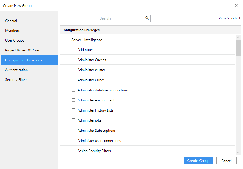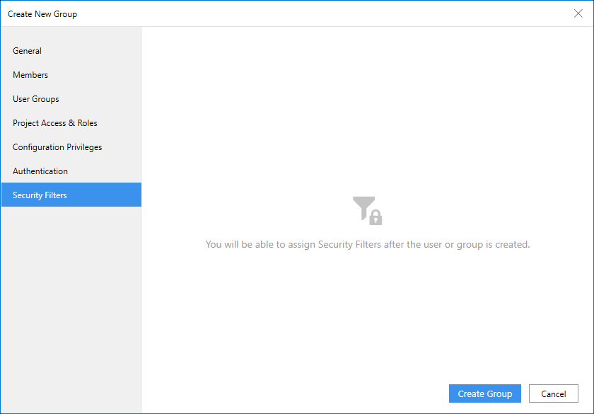 Filtres de sécuritéVous devez terminer la création du groupe d'utilisateurs avant de pouvoir attribuer des filtres de sécurité.