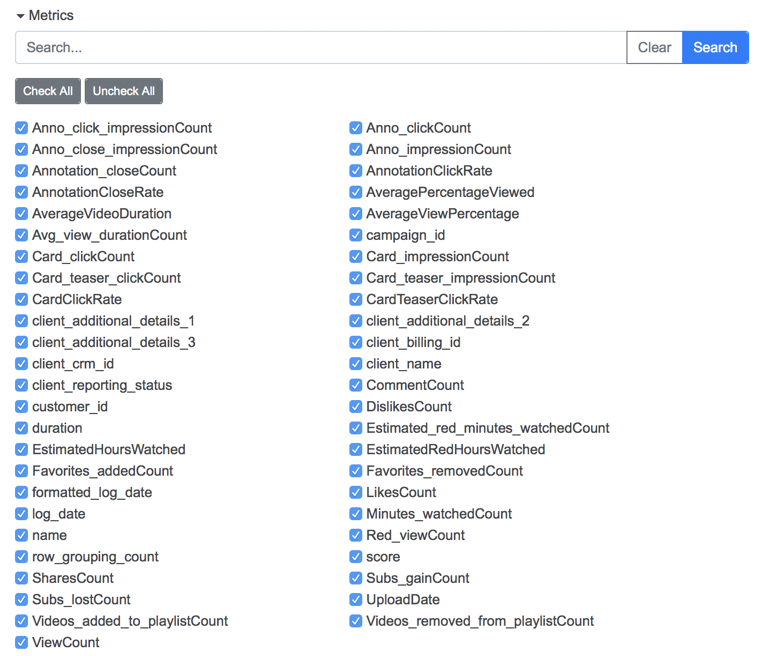 所有密钥均已默认勾选。顶部有一个实时筛选字段。输入或粘贴想要查找的字段名称。