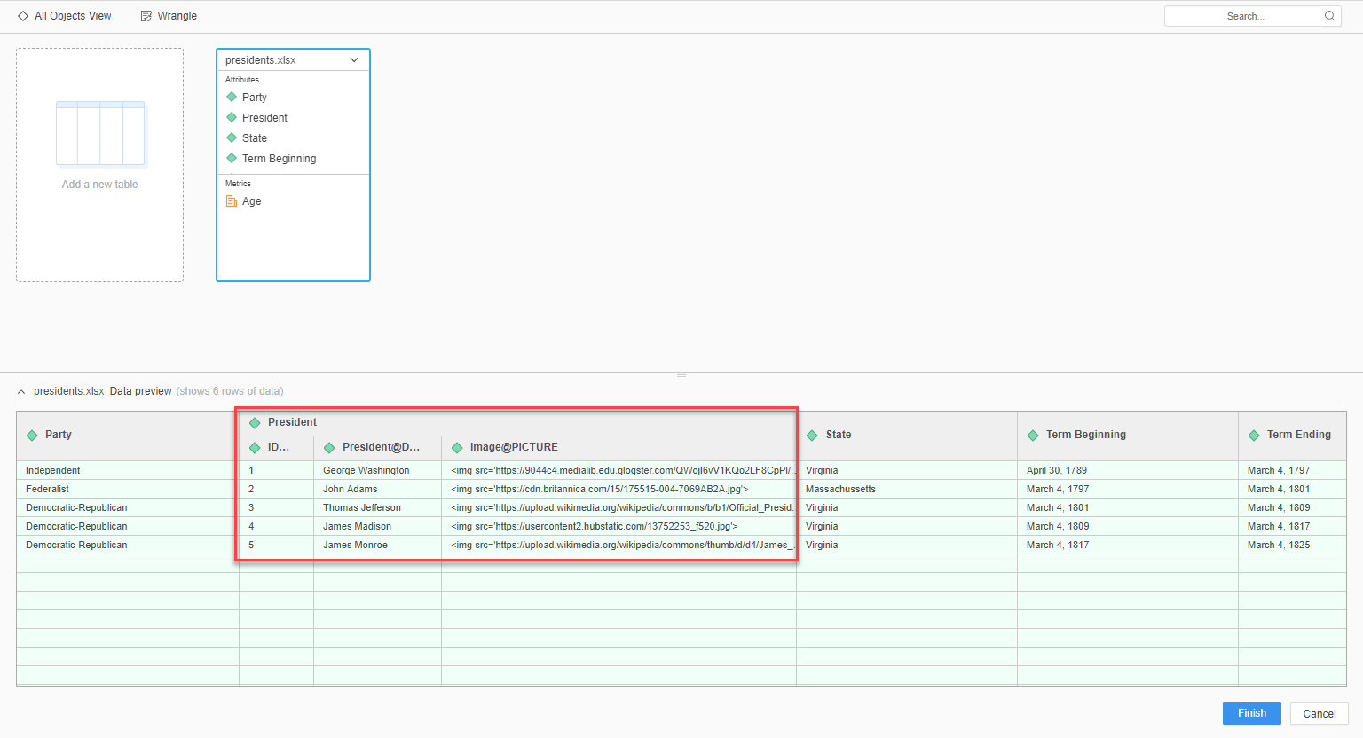 创建一个数据集,该数据集包含专门用于图像的列。将 HTML img 标记添加到此列中。
