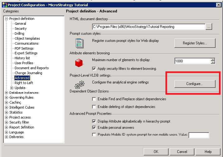 - In MicroStrategy Developer, choose Administration > Project Configuration….