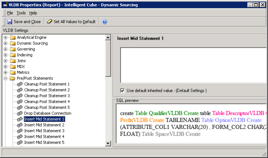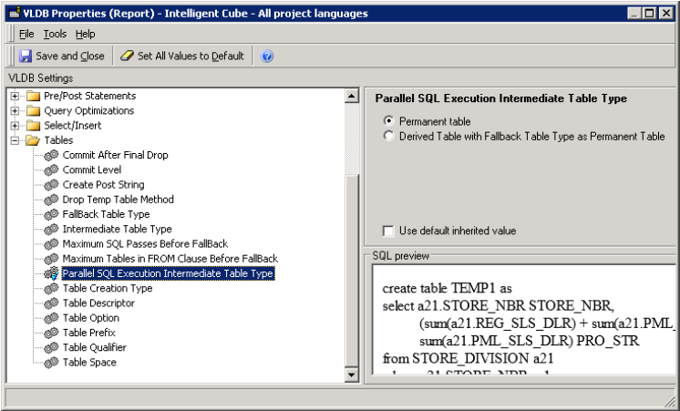 - In the VLDB Properties window, under VLDB settings, expand Query Optimizations.