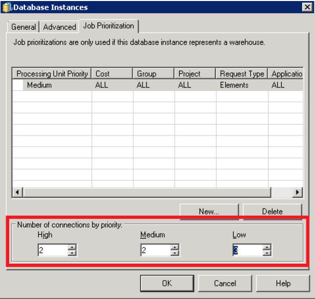 All Data Import cube publishing jobs are currently initiated as low-priority jobs. The Number of connections by priority setting controls the number of processes that are available to in-parallel fetch data from external locations and read into memory. This setting specifies the total pool of processes available at the server level for the specific type of Data Import.