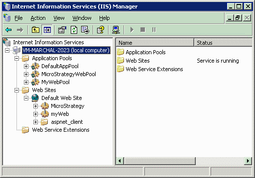 Add a new application pool using the original MicroStrategy Web’s deployment pool (MicroStrategyWebPool by default) as a template. For this example, the new application pool is called MyWebPool.