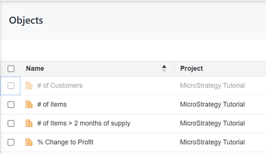 You can view or hide objects in your projects, including folders and applications. This allows you to see a less crowded view of objects.