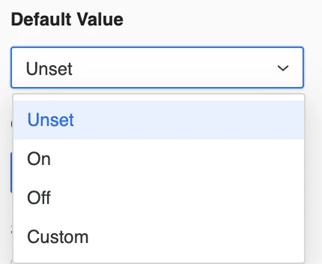 Select the Default Value: Unset, On, Off, or Custom.