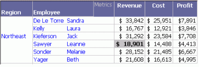 Open the Basic Report. Note that Leanne Sawyer's revenue is $316,786. This is sales for all time and all categories. You need to see revenue for specific quarter and category combinations, for example, electronics in Q1 2023 and music in Q3 2023. To do this, switch to Design View and create a joint element list, as described below.