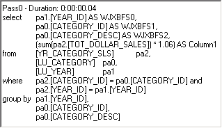 - Run the report in SQL view by entering 1.06 in the Prompt Answer Wizard and clicking Finish.