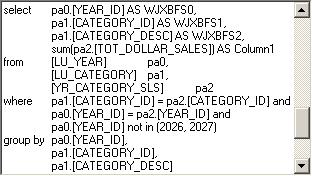 (Sum(YR_CATEGORY_SLS.TOT_DOLLAR_SALES) * ?[Select Clause Value Prompt])