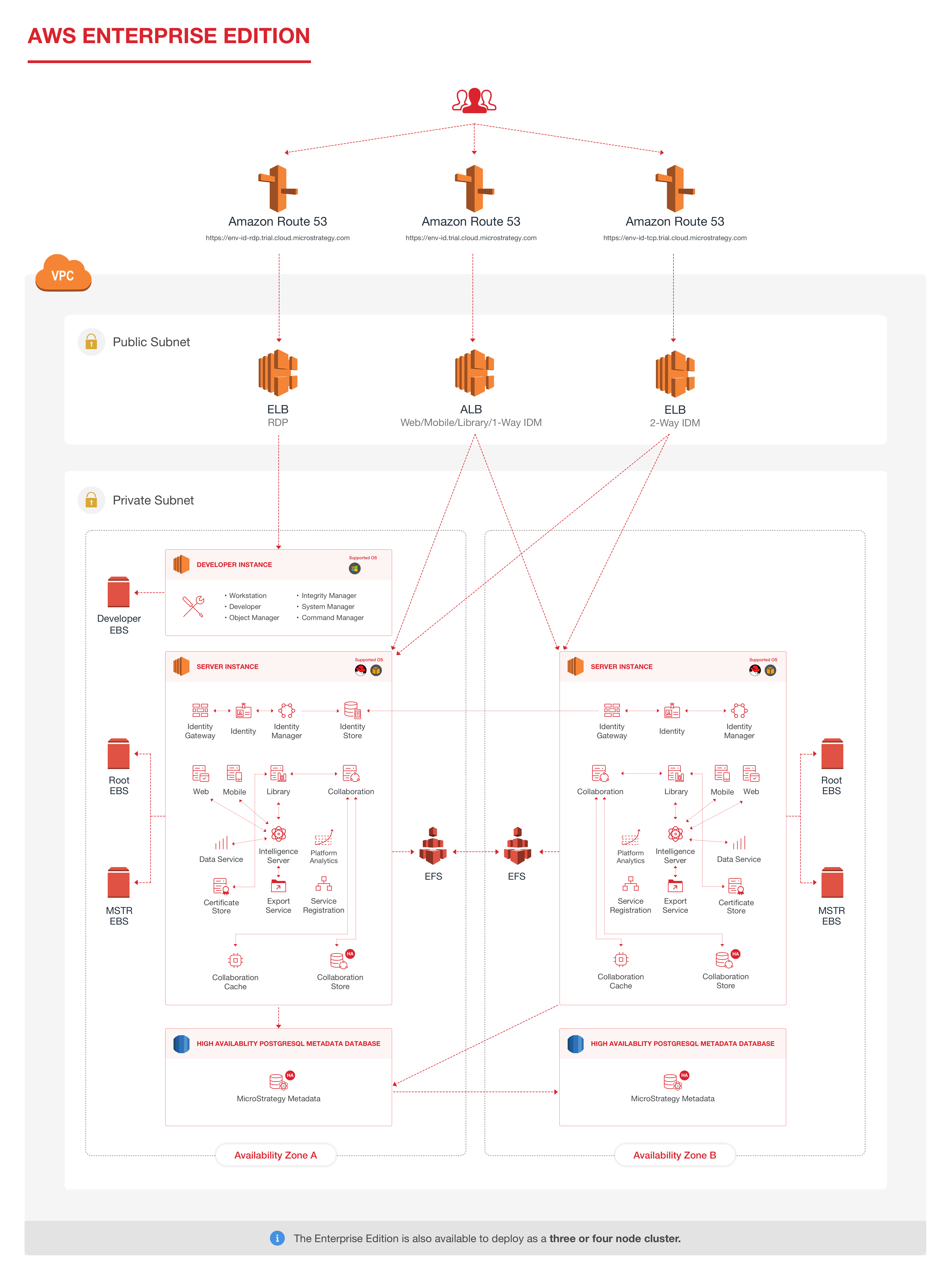 Der Strategy Cloud Platform for AWS Die Enterprise-Edition ist für Kunden konzipiert, die eine gesteigerte Leistung und Skalierbarkeit auf ihren Websites suchen Strategy UnternehmensAnwendungen durch Nutzung von Elastic Services sowie Clustering- und Failover-Funktionen.