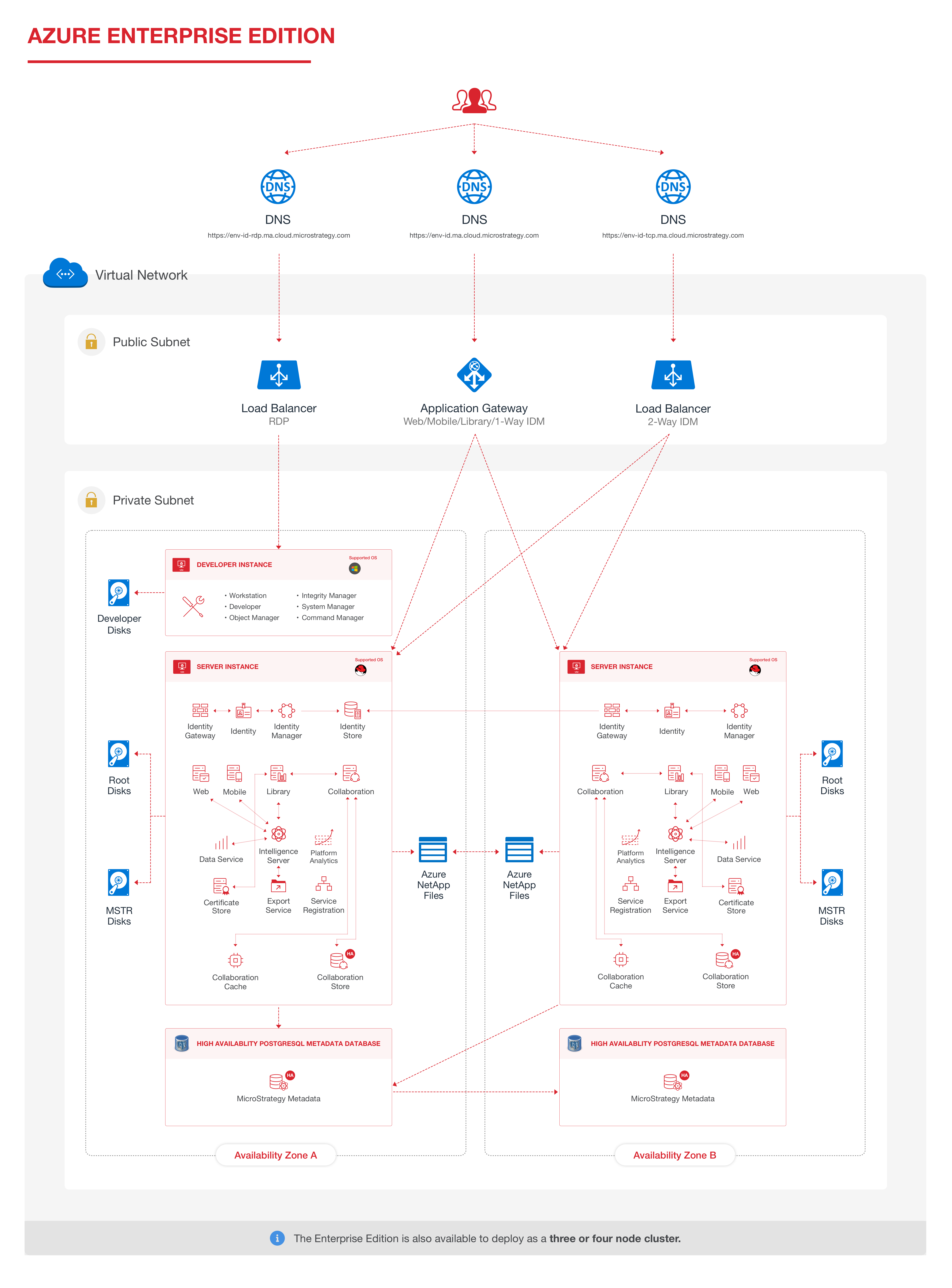 Der Strategy Cloud Platform for Azure Die Enterprise-Edition ist für Kunden konzipiert, die eine gesteigerte Leistung und Skalierbarkeit auf ihren Websites suchen Strategy UnternehmensAnwendungen durch Nutzung von Elastic Services sowie Clustering- und Failover-Funktionen.