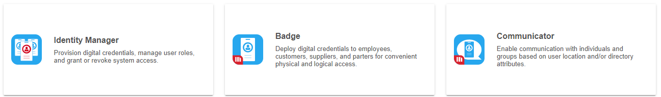 数字身份和移动遥测部分允许您打开身份管理器或下载 MicroStrategy Badge 或 MicroStrategy Communicator。将鼠标悬停在每个服务上以发射或者下载。