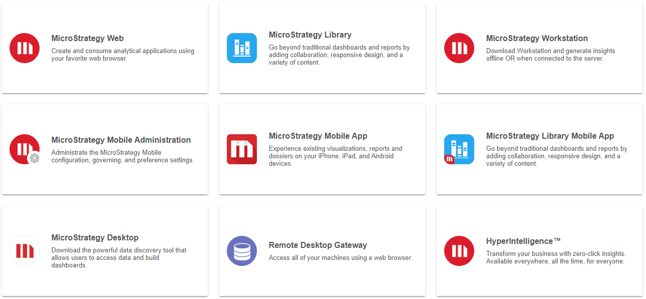 更多资源部分提供了其他Strategy工具。将鼠标悬停在页面上的每个服务上可查看可用的操作,例如发射或者配置。有些服务有视窗和苹果选项,单击任一选项即可将服务下载到您的机器。