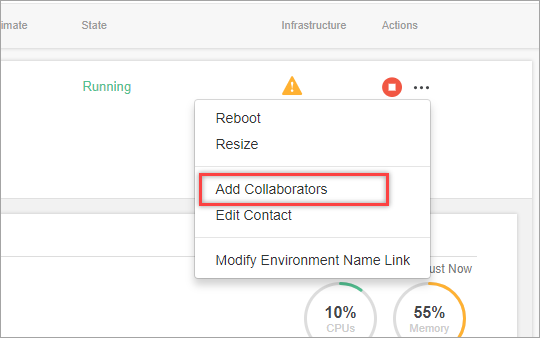 - Administrator(管理员):除了与协作者相似的权限之外,还可调整环境大小、终止和扩展环境,以及编辑联系人。