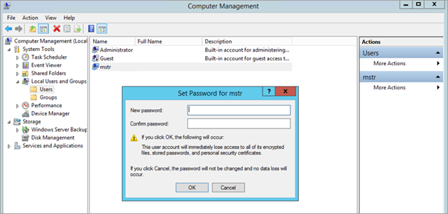 从 Windows 开发人员实例更改 MSTR 用户的默认密码