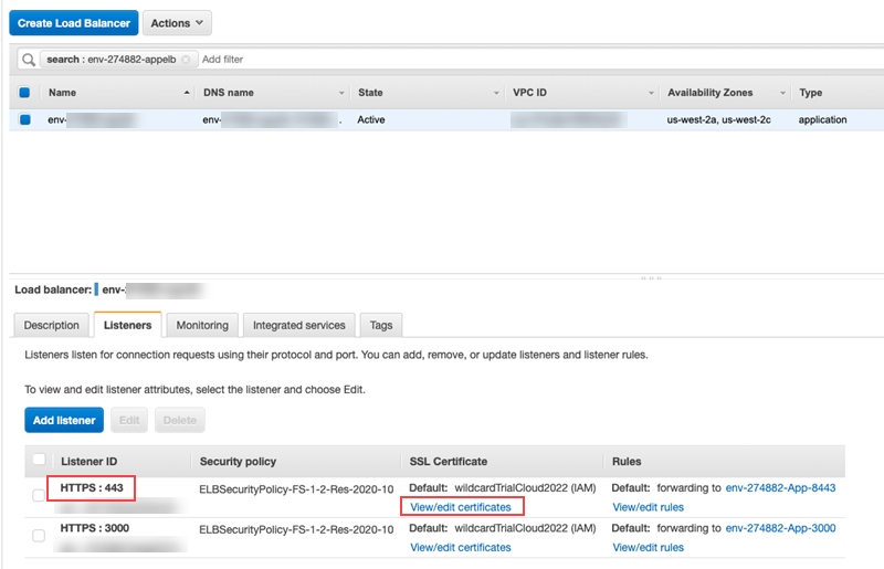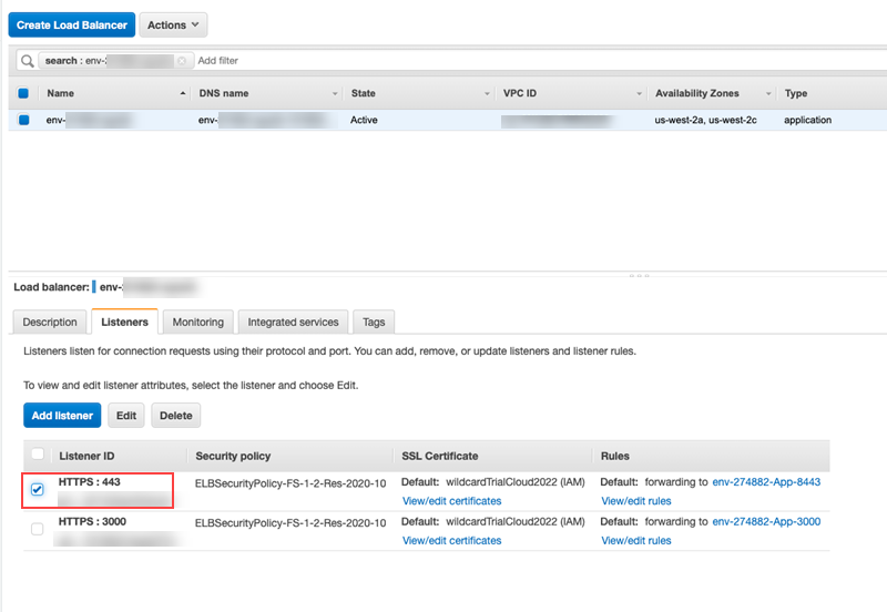 返回负载均衡器以选择HTTPS:443聽聽者。