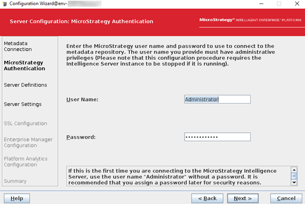 对于 MicroStrategy 2021 及更高版本,必须为环境启用 SSL。